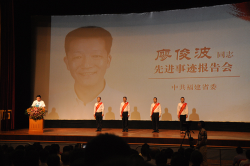 ????2017年7月6日下午,公司黨委組織人員參加在市人民劇場舉行的廖俊波同志先進事跡報告會。會上,南平市委常委、組織部部長羅志堅、政和縣人大常委會主任鄭滿生、政和縣石屯鎮松源村支書袁云機、閩北日報記者黃旭輝先后作了題為《牢記使命 不負黨恩》、《向夢想前進》、《廖書記,我們想你》和《遺憾與無憾》的報告。廖俊波同志的妻子林莉則以視頻播放的形式作了題為《一諾無悔》的報告。