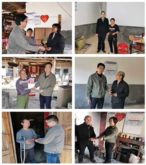 活動中,公司幫扶干部在公司派駐坪東村任第一書記曾鎮明同志和其他村干部的帶領下,挨家挨戶走進貧困戶家里,詳細了解其生活和工作情況,致予節日問候,并為每戶貧困戶送上幫扶干部個人慰問金600元,44戶共26400元。