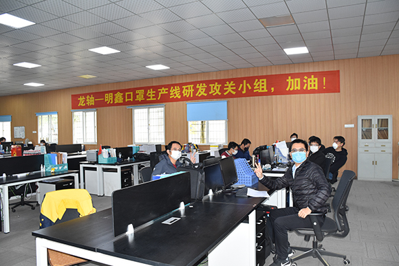 生命重于泰山,疫情就是命令,防控就是責任。2020年2月7日以來,新型冠狀病毒感染肺炎疫情防控進入關鍵階段,公司積極響應漳州市委、市政府千方百計提升防護物資產能的號召,聯手福建明鑫智能科技股份有限公司聯合研發日產10萬個醫用口罩生產線。研制團隊加班加點、甚至通宵加班,5天就完成了整機及相關機器零部件的設計,10天就制造出第一條生產線,截止2月27日就完成8條生產線,有效解決醫用口罩生產線“一機難求”的難題。