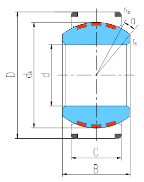 產(chǎn)品特點(diǎn):外圈沿軸向剖分成兩半,用鎖圈固定,外圈材料為軸承鋼,淬火,磷化,球面鍍硬鉻;內(nèi)圈材料為銅合金,球面鑲嵌固體自潤(rùn)滑材料。