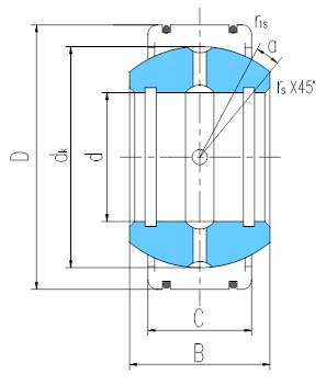 產(chǎn)品特點(diǎn):外圈沿軸向剖分成兩半,用鎖圈固定,內(nèi)、外圈材料均為軸承鋼,淬火,內(nèi)圈球面鍍硬鉻,外圈兩端帶有密封圈。