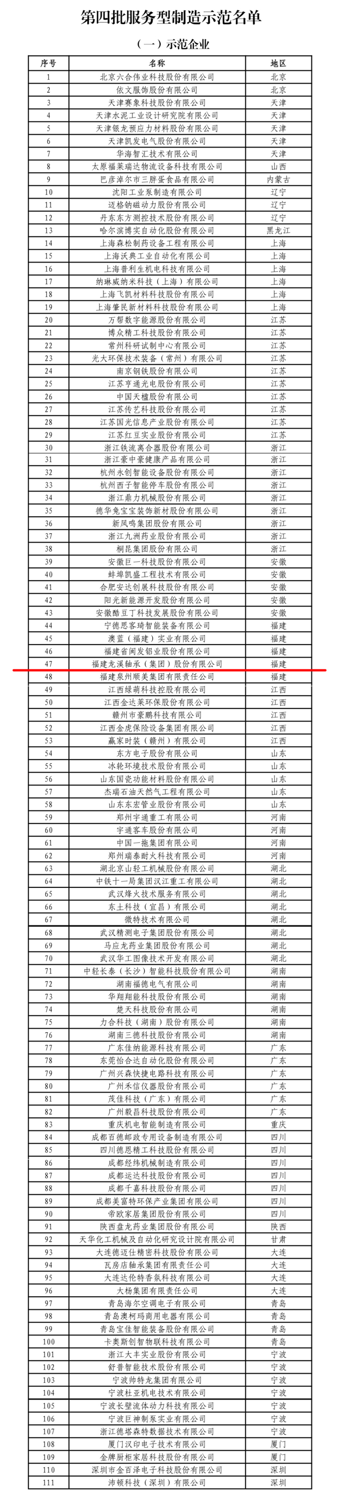 近日,工業(yè)和信息化部公布第四批服務(wù)型制造示范企業(yè)名單,龍軸集團(tuán)為福建省入選的五家企業(yè)之一。