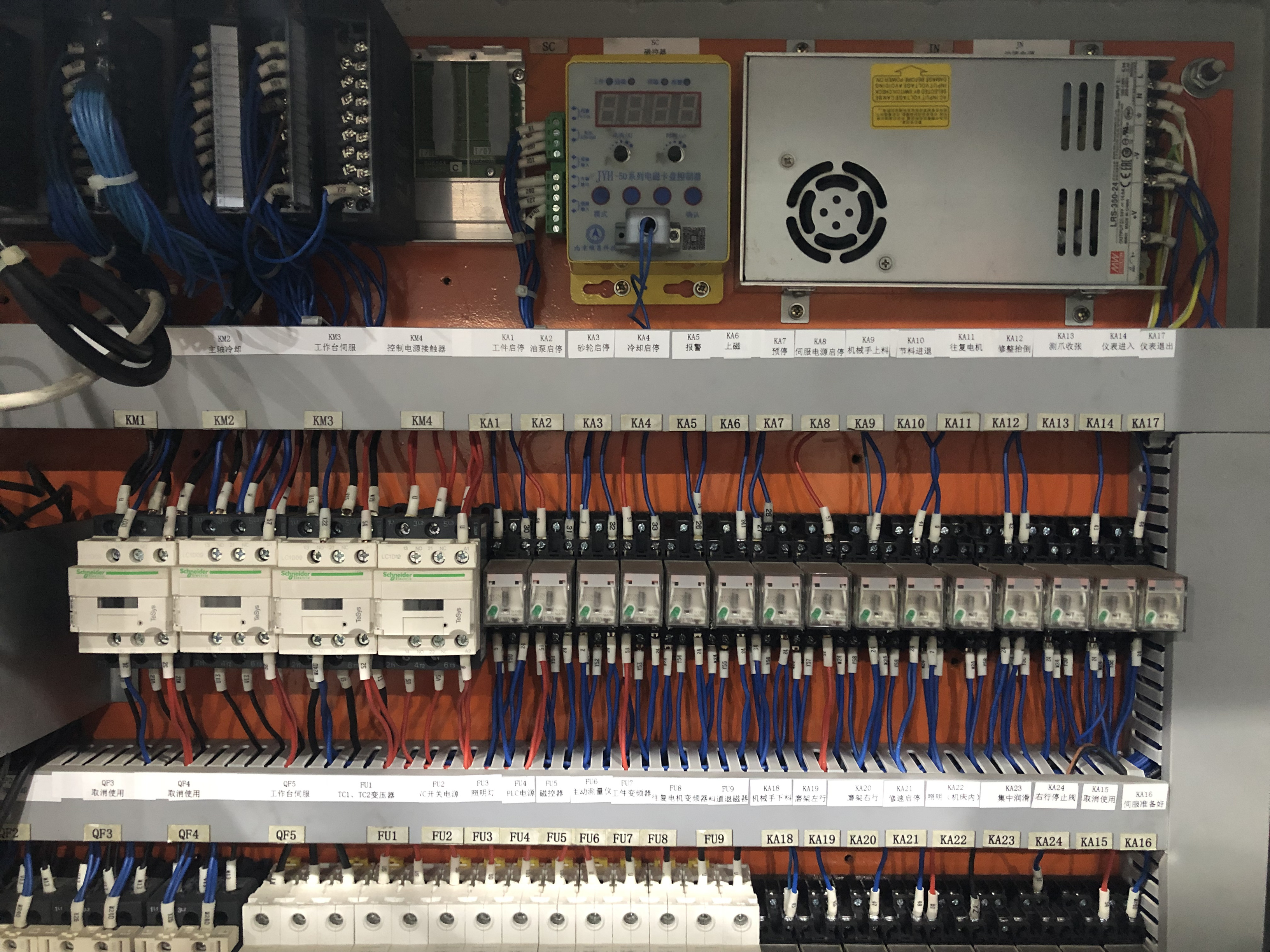 3、機床要有總接地端子排,所有的保護接地線均接在該端子排上,同時還要有專用的總接零端子排,所有的工作零線均接在該端子排上。
