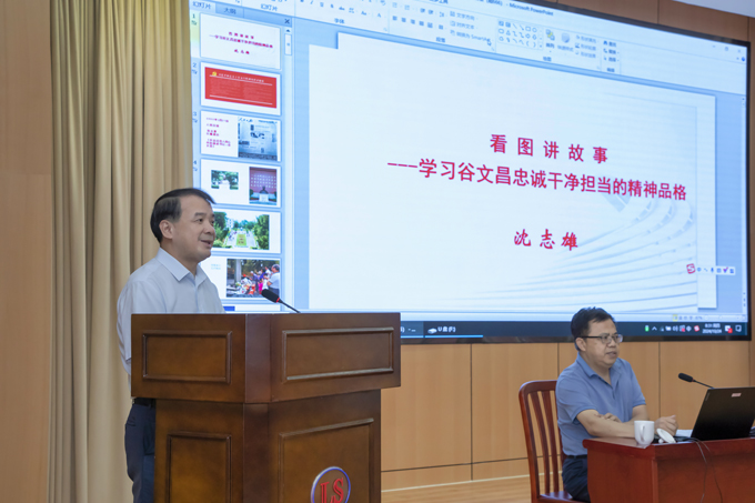 沈志雄老師圍繞“忠誠是谷文昌精神品格最厚重的基石”“干凈是谷文昌精神品格最自然的底色”“擔當是谷文昌精神品格最耀眼的華章”三個方面系統講述了谷文昌同志生平事跡,通過一幅幅珍貴的影像資料和一個個生動的事例,大家更全面地理解谷文昌精神品格的內涵,受到了深刻的精神洗禮。