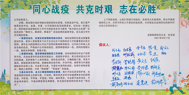會議結束后,公司各黨總支、黨支部書記隨即聯合發起“同心戰疫  共克時艱 志在必勝”倡議,號召廣大黨員、員工嚴格落實黨中央、省委、市委、公司黨委的各項部署要求,切實統一思想認識,把積極投身疫情防控工作作為檢驗黨史學習教育“我為群眾辦實事”實踐活動和“再學習、再調研、再落實”活動成果的重要考驗,在大戰大考中交出滿意答卷。