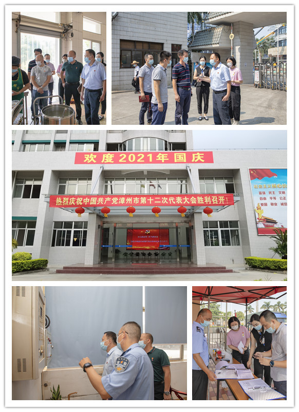????2021年9月30日,龍軸集團黨委副書記劉明福帶領黨建人事部、黨委宣傳部、紀檢監察室等相關人員深入藍田一、二、三廠區對疫情防控工作、節日和漳州市第十二次黨代會氛圍布置、節日值班安排及廠區環境衛生等情況進行了檢查。