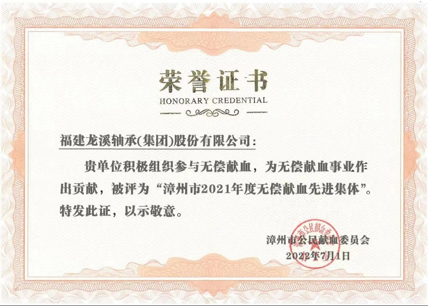 近日,漳州市公民獻血委員會辦公室授予龍軸集團“漳州市2021年度無償獻血先進集體”稱號,同時授予高鄭峻“漳州市2021年度無償獻血個人促進獎”稱號。
