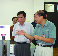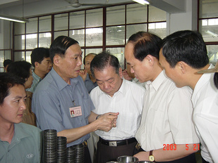 2003年10月22日,鄭松巖(時任福建省經(jīng)貿(mào)委主任,左二)視察龍軸