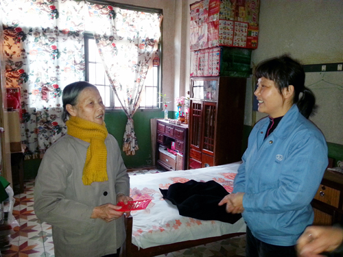 啟動儀式后,公司義工代表隊作為活動的第10支義工隊伍,在新橋社區工作人員帶領下,將愛心傳遞到了位于前鋒新村、南太武、新橋等地的5戶低保戶人員家中。義工代表們親切的笑臉,熱情的慰問為連日來的低溫帶來濃濃的暖意。