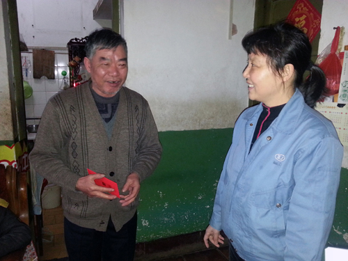 2015年2月10日,市總工會副主席黃躍秋一行在公司工會常務副主席洪麗玲、女工委副主任何碧珠的陪同下到公司員工劉燕琴家中走訪慰問。黃躍秋副主席與劉燕琴親切交談,詳細了解她的身體康復情況及家庭生活狀況并帶去新春祝福,洪麗玲也代表公司工會送上節日祝福,劉燕秋對市總工會及公司的關心表示感謝,并表示身體康復情況不錯,希望能早日回到工作崗位。