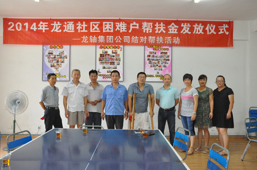 2014年8月8日,公司與薌城區南坑街道龍通居委會聯合舉行了“2014年幫扶特困戶幫扶金發放儀式”。 公司黨委副書記張泰生在會上再次向2012年結對幫扶的5戶龍通社區困難戶各發放了3000元的幫扶金,并和他們進行了親切座談。面對受助人員溢于言表的感謝之辭,張泰生表示:“作為福建省文明單位,帶頭開展社會公益事業是義不容辭的責任。希望你們的生活能有所改善,同時,也希望通過這樣的行動,積極傳播扶危濟困的中華民族傳統美德,讓更多需要幫助的人得到社會關懷!”