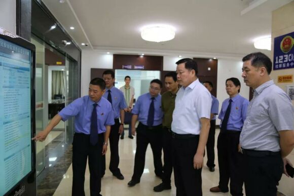 ????7月3日,市委副書記、政法委書記阮開森一行深入漳浦縣、東山縣公安局、檢察院和法院,現場察看社會治安視頻監控系統、維穩處突應急演練,實地調研推動掃黑除惡、安定穩定等工作。