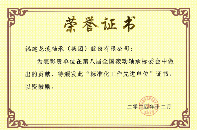 近日,全國滾動軸承標準化技術委員會八屆五次會議在青島成功舉行。龍軸集團在引領關節軸承行業、國家及ISO標準制修訂工作成效顯著,從63家委員單位中脫穎而出,榮獲第八屆全國滾動軸承標委會“標準化工作先進單位”稱號。