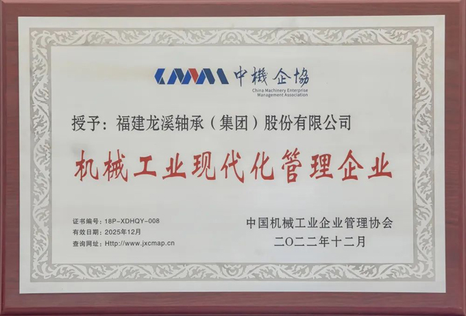 榮膺全國軸承行業唯一的中國機械工業“現代化企業管理示范工程”最高榮譽