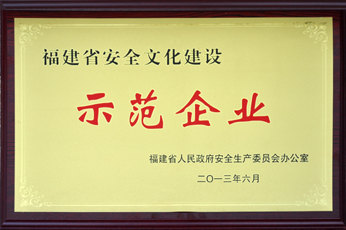 近日,公司被福建省政府授予“安全文化建設(shè)示范企業(yè)”榮譽稱號。這是對我司以安全文化促管理,以安全文化促發(fā)展,努力構(gòu)建安全型企業(yè)工作又一重要肯定。回顧創(chuàng)建歷程,這是公司全員參與、共同努力的成果。