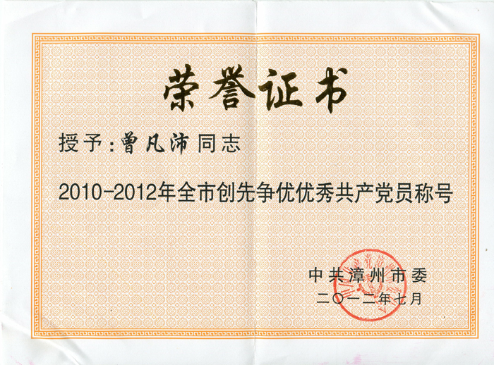 市創(chuàng)先爭優(yōu)優(yōu)秀共產(chǎn)黨員(曾凡沛)