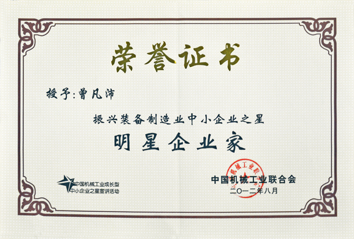振興裝備制造業(yè)中小企業(yè)明星企業(yè)家(曾凡沛)