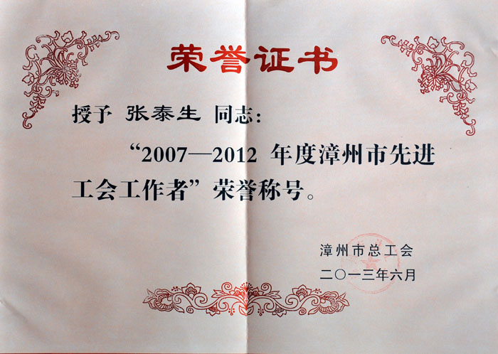 漳州市先進工會工作者(張?zhí)┥?/FONT>