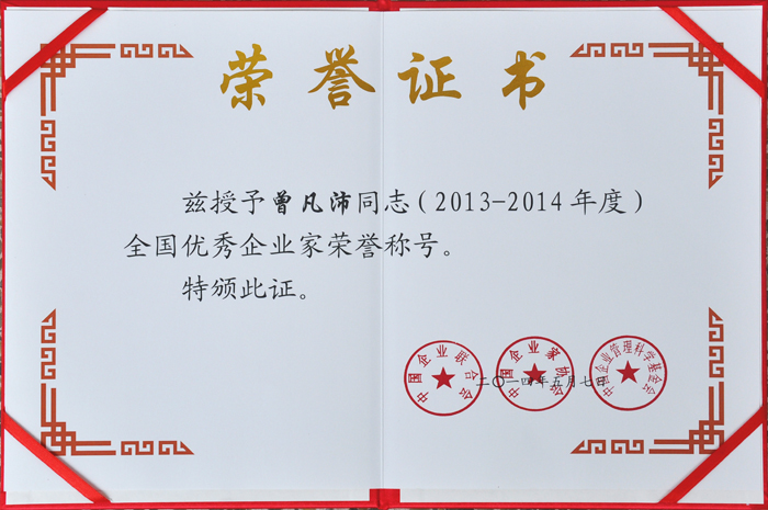 全國優(yōu)秀企業(yè)家(曾凡沛)