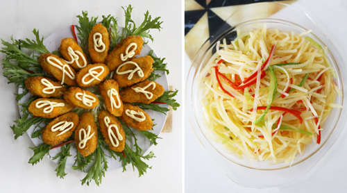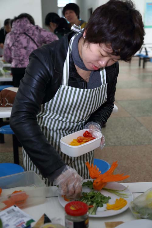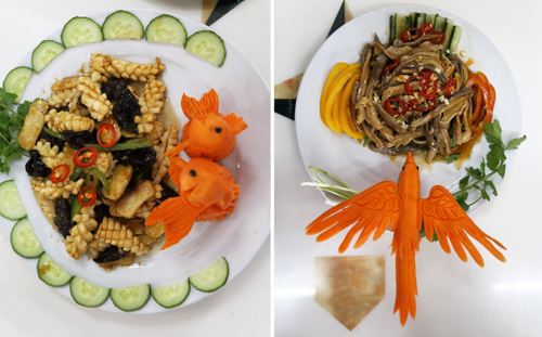 參賽隊(duì)員們自帶食材,各顯其能,動(dòng)作嫻熟,有條不紊,盡顯烹飪能手的風(fēng)采。十八支參賽隊(duì)共烹飪出了18道熱菜和18道冷菜的美味佳肴,他們還為每個(gè)菜品起了生動(dòng)的名字,寓意不同,“荷荷美美”寓意家庭和美幸福;“魚躍龍門”彰顯著對(duì)職工、對(duì)企業(yè)的美好祝愿;“多彩人生”承載著每個(gè)職工對(duì)工作生活期盼。不僅創(chuàng)意新穎,而且色澤鮮美,味道純正,女工們用自己精心烹飪的美味佳肴互傳友誼,倡導(dǎo)和諧健康生活。
