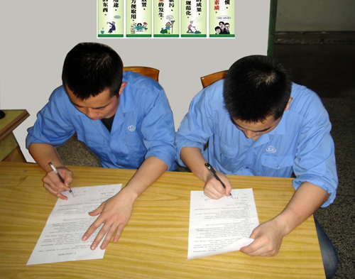 落實安全生產責任制是考核我司安全生產標準化和企業(yè)安全文化建設工作的一項重要指標,2013年初,公司根據(jù)各單位實際編制了各子公司安全生產責任書、各部門安全生產責任書、各車間安全生產責任書及班組、員工安全生產責任(狀)范本發(fā)放到各部門、車間及班組征求意見。并從2月底到3月上旬陸續(xù)完成公司與各子公司、公司與車間,公司與部門、車間與班組、班組與員工安全生產責任書(狀)的簽訂,通過層層簽
