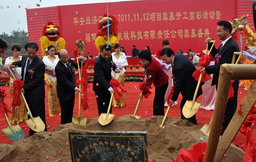 2011年11月12日,在第三屆海峽兩岸現代農業博覽會·第十三屆海峽兩岸花卉博覽會即將召開之際,公司全資子公司——福建金昌龍機械科技有限責任公司在漳州市華安經濟開發區舉行了盛大的奠基典禮!漳州市市長吳洪芹及洪仕建、陳少青等市領導親臨慶典現場并為項目揭彩、培土,華安縣委書記柯志宏、縣長沈建平率華安縣相關部門負責人,公司黨委書記、董事長曾凡沛、總經理許廈生、常務副總經理陳晉輝率全體中層主管參加了奠基典禮。公司黨委書記、董事長曾凡沛在慶典上發表了熱情洋溢的致辭